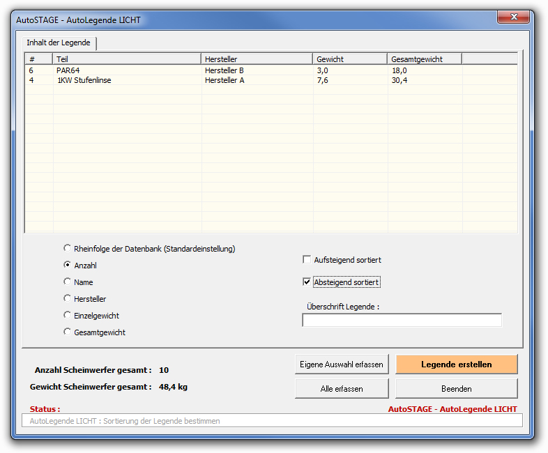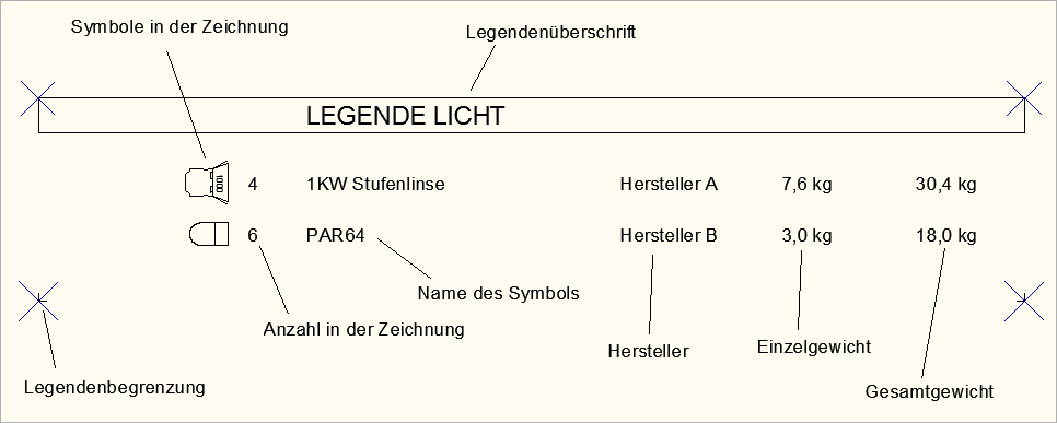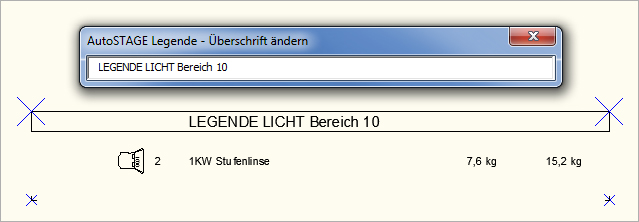 ...AutoSTAGE / Überschrift für Legende eingeben <LEGENDE LICHT> : Bereich1