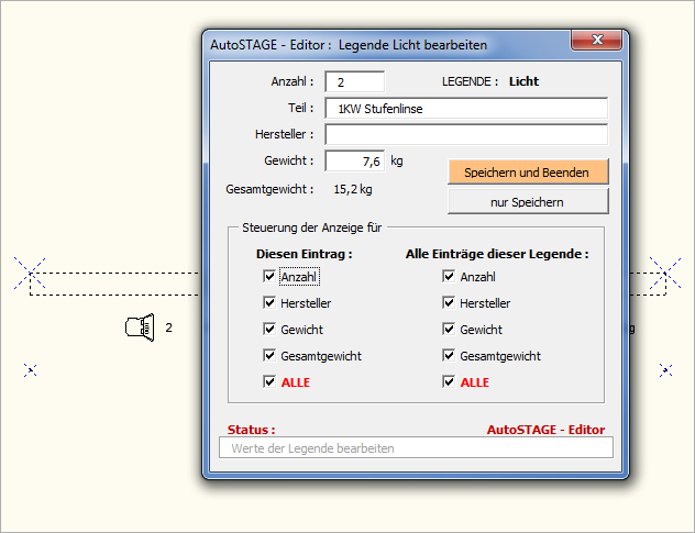 ...AutoSTAGE / Bitte warten..... Legende wird erstellt ...AutoSTAGE / Legende für 1KW Stufenlinse erstellt ...AutoSTAGE / Legende LICHT erfolgreich erstellt