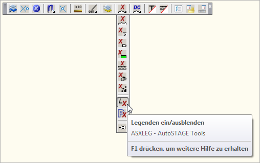 Mit dem Befehl ASXLEG können alle Legenden in einer Zeichnung, unabhängig vom Gewerke, ein- und ausgeblendet werden.