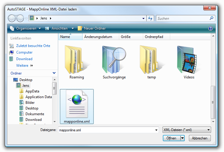 Mit MappOnlinePro erstellte XML-Datei auswählen und öffnen: