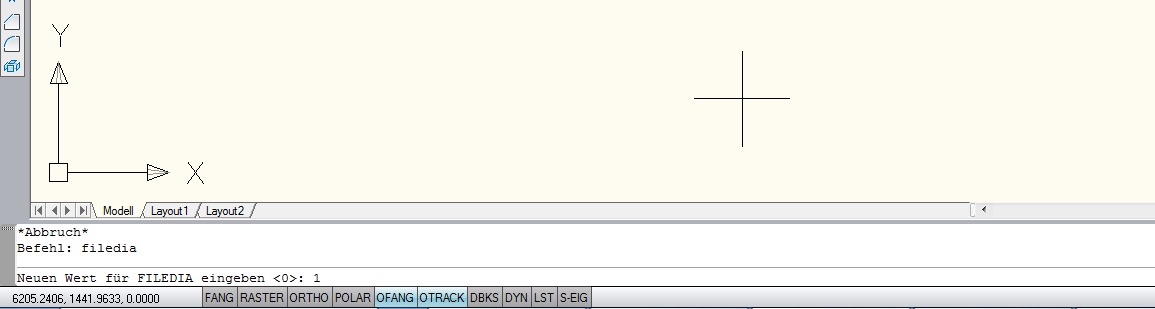Um die Windows-Dialoge wieder anzuschalten, geben Sie den Befehl FILEDIA ein.