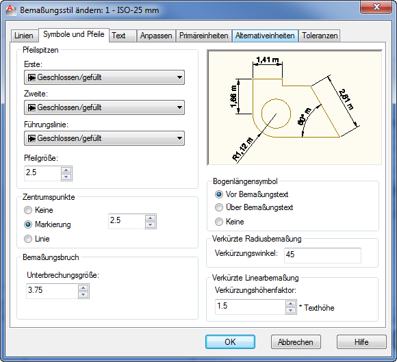 Bemaßungsstil - Symbole und Pfeile anpassen