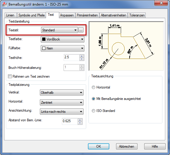 Über Ändern... wird der ausgewählte Bemaßungsstile bearbeitet.
