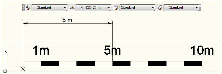 Die folgenden Beispiele für die Bemaßung in den verschiedenen metrischen Maßstäben (siehe Zeichnungseinheiten + Maßstab ) verwenden die Bemaßungsstile aus folgender Vorlage: