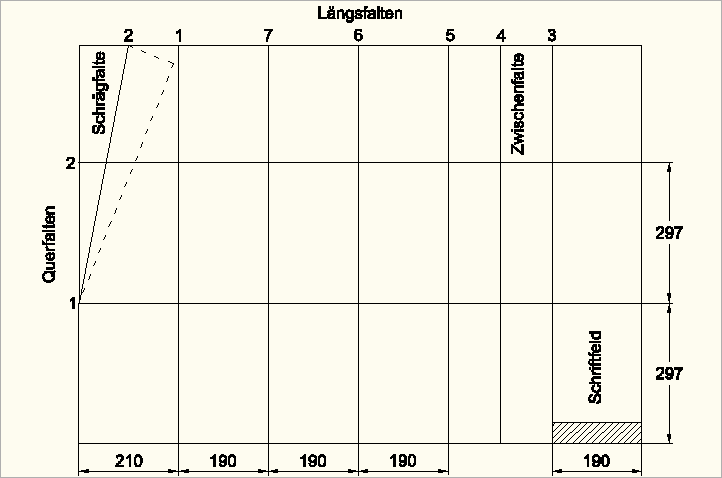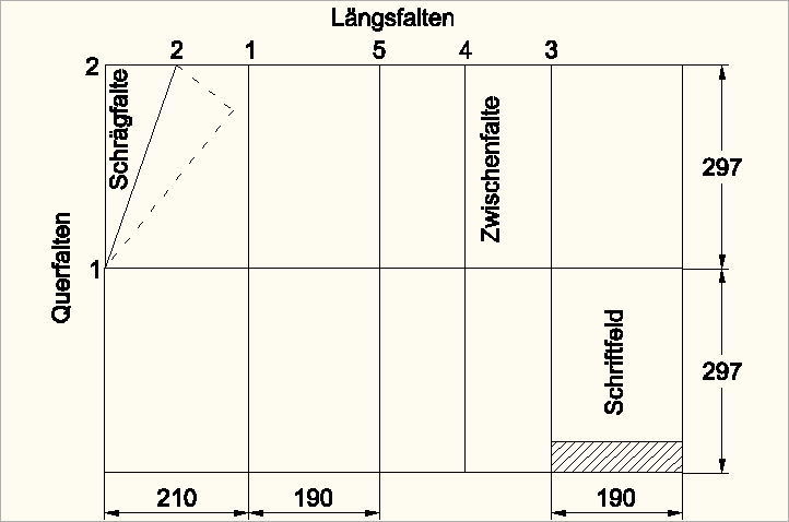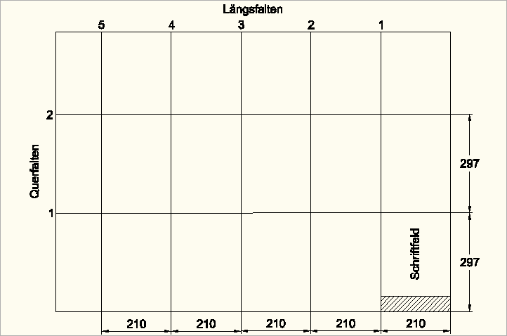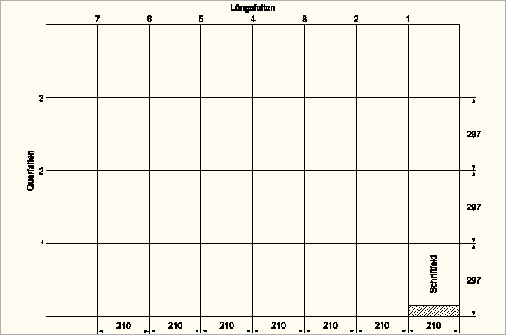 Grundsätzlich werden Pläne erst längs (lange Seite), dann quer (kurze Seite) gefaltet.