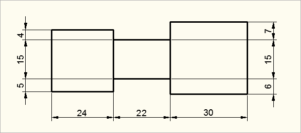 Bei der Kettenbemaßung haben die Maße kein gemeinsames Bezugselement. Jedes Maß gibt den Zuwachs zum vorhergehenden Maß an. Die Bemaßung erfolgt von Abstand zu Abstand als Maßkette.
