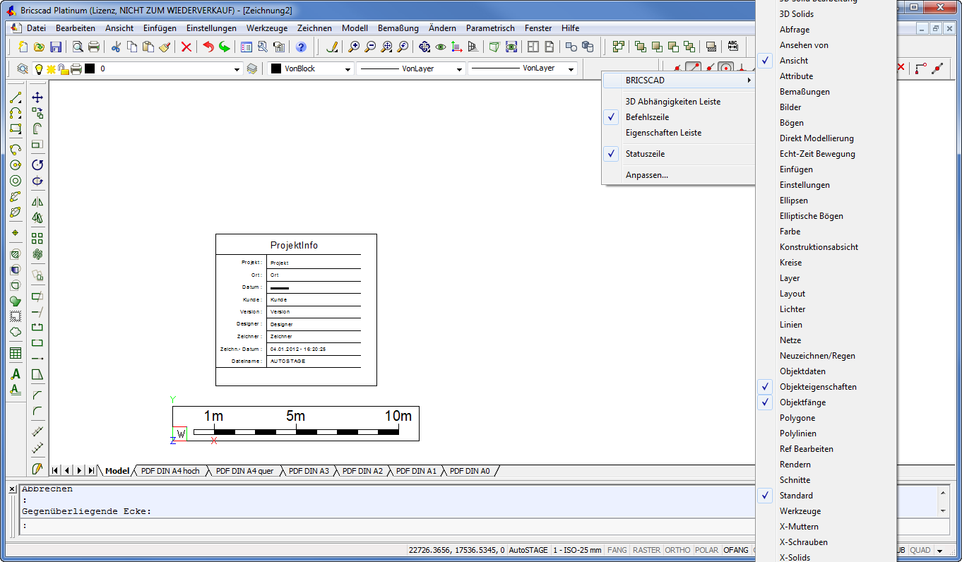 Bricscad bietet Ihnen dutzende von Werkzeugkästen zur Auswahl an. Für eine effektive Arbeit sind jedoch in der Regel nur folgende Werkzeugkästen notwendig:
