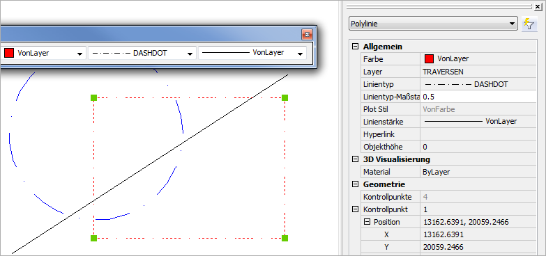 Wenn als Linientyp VonLayer eingestellt wird, kommt der Linientyp des Objekts über den Layer, auf dem das Objekt liegt.