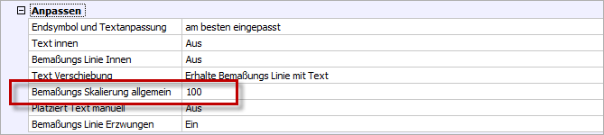 Andernfalls kommt die Höhe der Bemaßung über den Textstil, wodurch der Bemaßungstext nicht richtig skaliert wird.